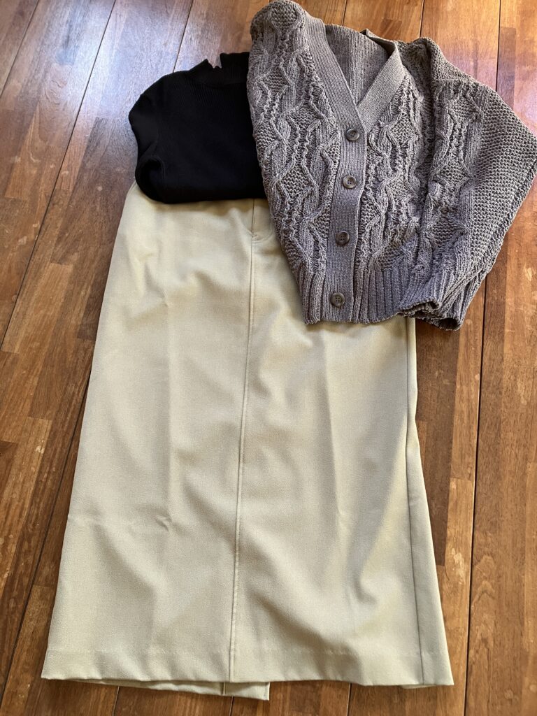 今回のグレーのカーディガンも